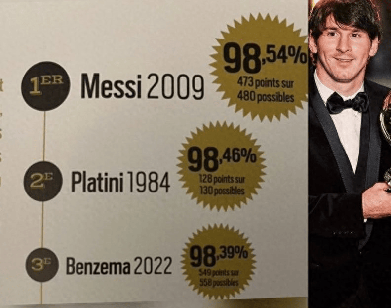 梅西2009年捧起首座金球奖时,22岁的他还不知道这只是一个传奇的开始。16年过去,当金球奖主办方公布历史得票率排行榜,那位阿根廷人依然高居榜首,98.54%的支持率,480分中豪取473分,这项数据至今无人能及。